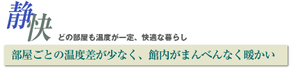 | 冬(夏)の住宅は、家の中のどこへ行っても暖かく(涼しく)、部屋の上下温度差や部屋ごとの温度差が小さいことが理想です。断熱性が低く、すき間の多い住宅での冷暖房は、 たくさんのエネルギーを絶えず注ぎ続けなければなりません。 逃げていく室温を保とうと、冷暖房を必要以上のレベルで運転するため、 居間と廊下、空間の上下の温度差は更に広がります。SW工法では全室が一日中快適な温度に保たれています。 |